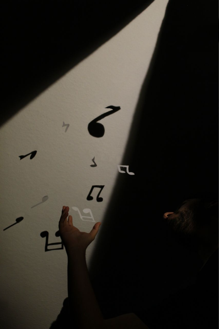 À travers cinq photographies, on raconte la naissance d'une pièce musicale. Le musicien, absorbé par sa création, semble prisonnier de sa mélodie.